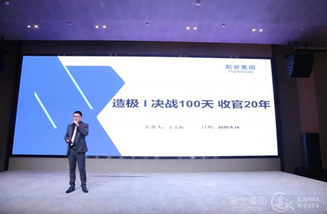 2020年9月16日上午,为调动彭世修脚集团全体员工积极性,号召大家抓住2020年最后黄金100天,营造技术、服务、环境全面比拼的浓厚氛围,动员集团公司各部门及全国事业部迅速进入决战状态,给2020年以完美收官,彭世集团总部全体员工、直营中心、培训学校、物流部、电商部、药业及全国代理商、合伙人代表等500余人齐聚一堂,在中国·郑州未来大厦隆重召开彭世集团2020年度【造极 | 决战100天,收官20年】启动大会! 大会伊始,现场五百余人在主持人的带领下,齐声朗诵彭世企业文化。彭世“金话筒”秦海成校长更是现场带领大家热舞不断,为本次造极行动加油打气,瞬间燃爆全场! 气势恢宏的沙场点兵,一声声嘶吼,震彻全场的气势回应,让彭世人战斗的热血沸腾了起来! 随后,造极行动总指挥、彭世集团品牌中心总监孟照辉对2020年“决战100天”造极行动活动方案进行宣讲,并郑重公布造极行动总目标! 彭世集团招商中心虎狼之师团队展示