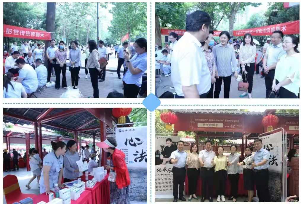 文化的孕育和传承穿越千年,文明的融汇和互鉴历久弥新。在中国共产党成立100周年,十四五开启奋进新征程之际,郑州市2021年“文化和自然遗产日”宣传展示活动在绿荫公园正式开幕。郑州市人民政府副秘书长李慧芳,郑州市文改办副主任、三级调研员王成福,金水区人民政府副县级干部王珂,金水区文化旅游体育局党组书记、局长许孔安,郑州市绿文广场管理中心绿荫公园主任申峰等领导出席了此次活动。彭世“传统修脚术”作为非物质文化遗产项目,再次受邀参加了本次非遗展演活动。